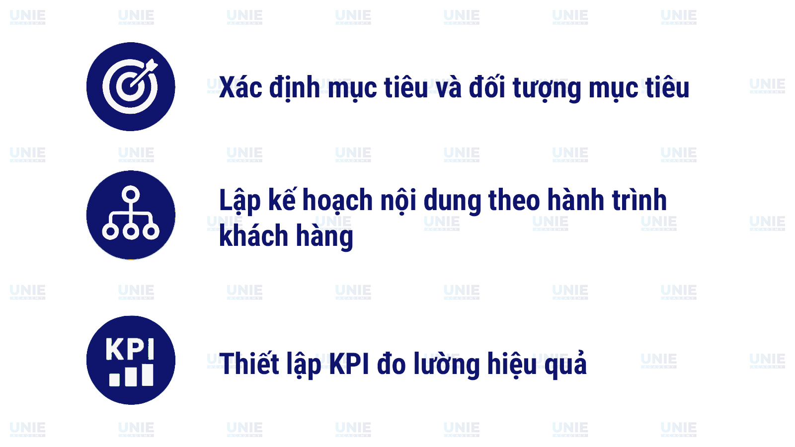 - Giai đoạn nhận thức: Blog posts, infographics, video ngắn giúp khách hàng nhận diện vấn đề